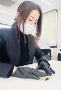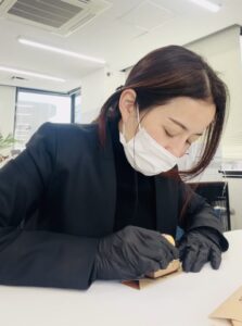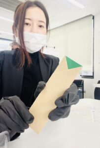 職員がお箸袋折りとハンコ押しに挑戦🌟 軽作業として一からお箸袋を折りハンコを押す作業をして頂いております! 折り方やハンコの押し方は一から職員がお教え致しますのでご安心ください😌