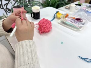 お箸袋にハンコ押し、編み物、レジン、ハンカチ折りなど種類豊富です😌