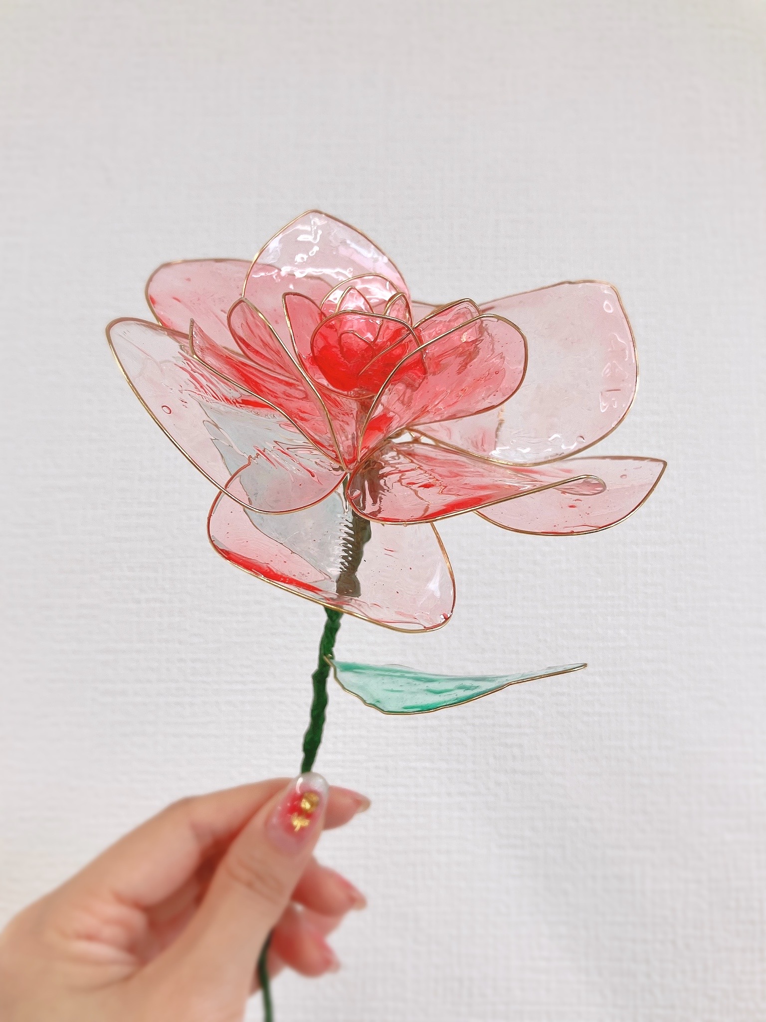 技術指導員の谷尾です! 以前巻いたワイヤーの着色後、パーツを組み合わせて素敵なバラが完成しました✨ ….続きを読む >